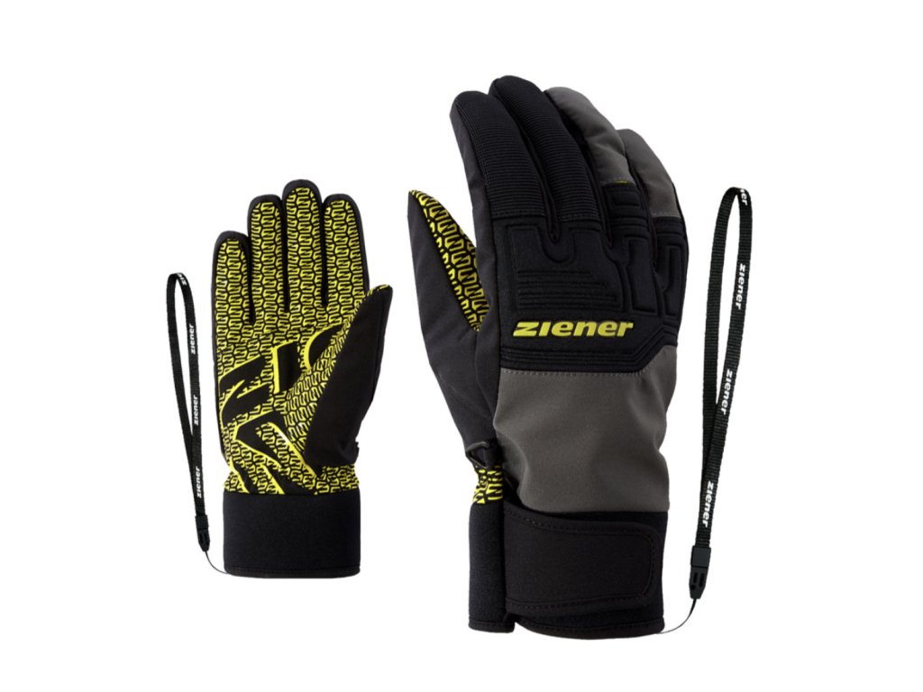 Moderní pánské lyžařské a snowboardové rukavice Ziener GARIM AS z elastického materiálu. Jsou voděodolné, mají neoprenové manžety, poutko a protiskluzovou dotykovou dlaňovou část.